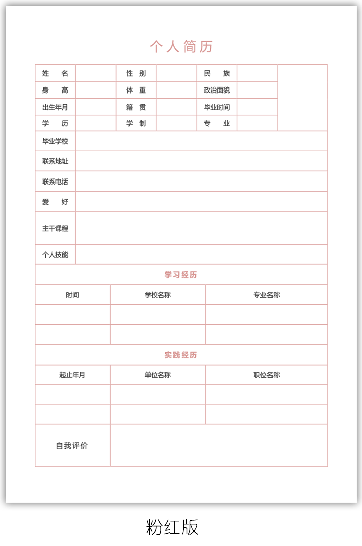 大学生空白个人简历表格模板电子版可填写下载bg25