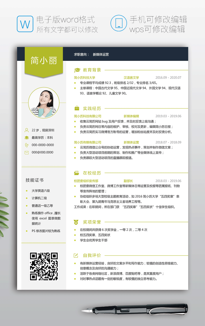 负责云简历网日常内容的维护、审核、校对及更新,编辑简小历日报;